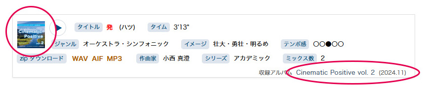 新譜に収録された 全オリジナルミックスの試聴・ダウンロードを一括で行えるページ としてご利用いただけます。 また、各曲の試聴パネルからは、収録アルバムの詳細ページ へ直接移動することもできます(パネル内のアルバムジャケット画像、または右下に表示される収録アルバム名がリンクになっています)。